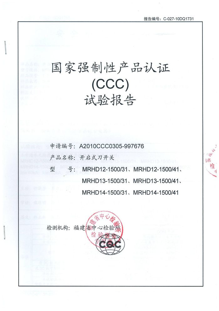 MRHD13-開(kāi)啟式刀開(kāi)關(guān)資質(zhì)證書(shū)