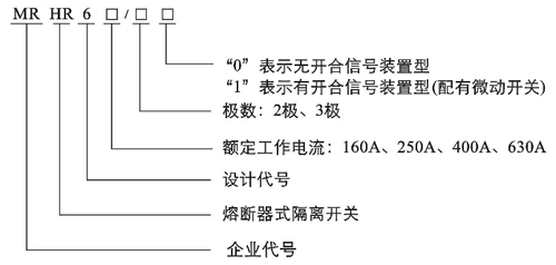 MRHR6系列熔斷器式隔離開關(guān)(以下簡稱開關(guān))主要用于額定電壓交流380V和660V (45~62Hz),約定發(fā)熱電流至630A的具有高短路電流的配電電路和電動機(jī)電路中,為電源開關(guān)、隔離開關(guān)、應(yīng)急開關(guān)、并作電路保護(hù)之用,但一般不作為直接開閉單臺電動機(jī)之用。