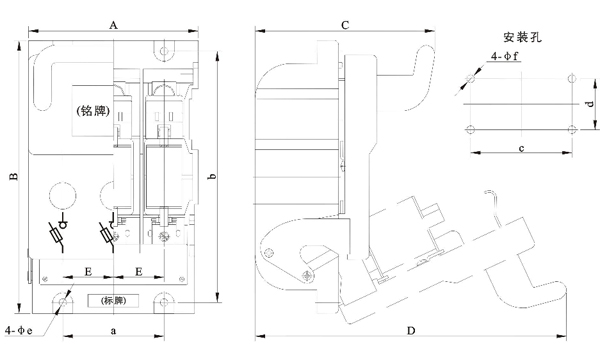 開關(guān)由底座、蓋和滅弧室等部分組成,均由耐弧塑料制成,為全塑型結(jié)構(gòu)。靜觸頭直接裝在底座上,滅弧室拆裝方便,每個(gè)滅弧室都有內(nèi)室和外室二部分,采用多片金屬滅弧柵,增強(qiáng)了滅弧能力,提高了觸頭壽命。