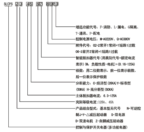 用戶在訂貨時應寫明SLCPS控制與保護開關電器的產(chǎn)品型號、規(guī)格、短路脫扣器額定電流、智能控制器額定工作電流、負載性質(zhì)、線圈控制電壓、接線方式等內(nèi)容。